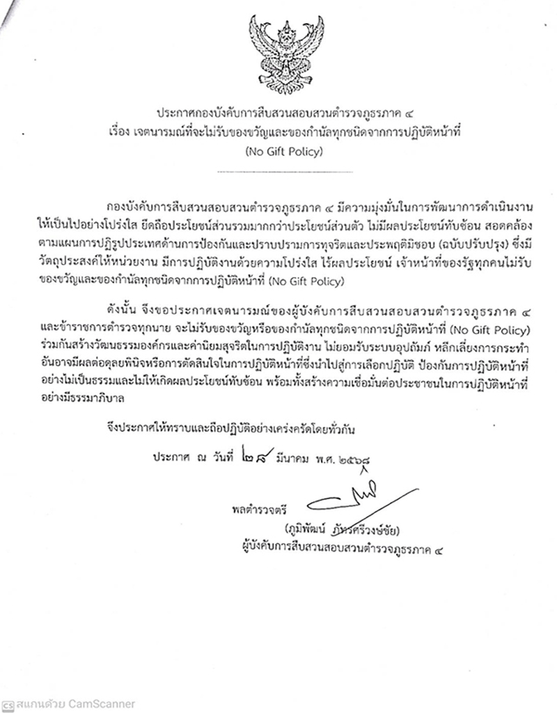 จึงได้แจ้ง ผู้บังคับบัญชา เพื่อทราบ และแจ้ง